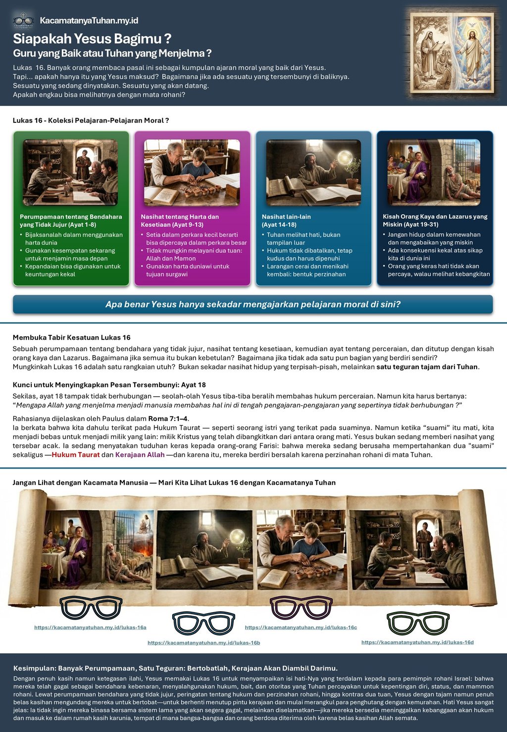 Semua yang ditulis dalam Lukas 16 bukan kumpulan pengajaran moral. Itu adalah teguran kenabian dari Tuhan sendiri, kepada para pemimpin Israel: